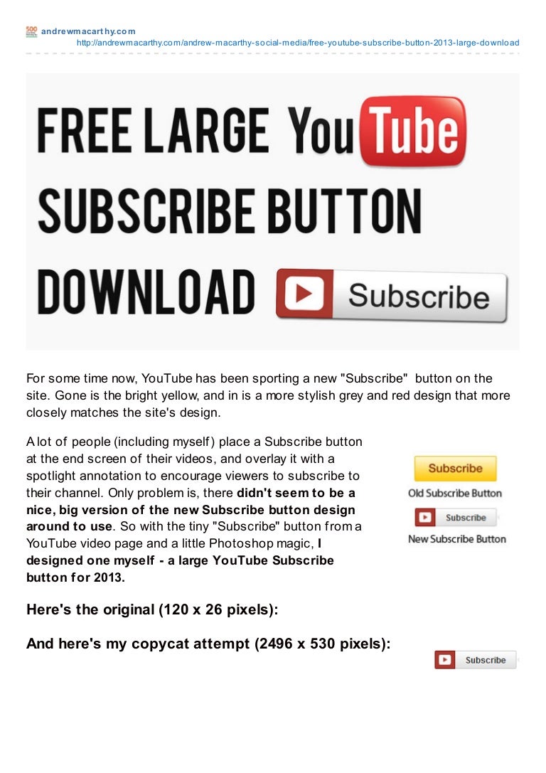 FREE YouTube Subscribe Button PSD 2013 - Large Size Download — Social Media Marketing Tips, Social Media Swansea, Wales | Andrew Macarthy