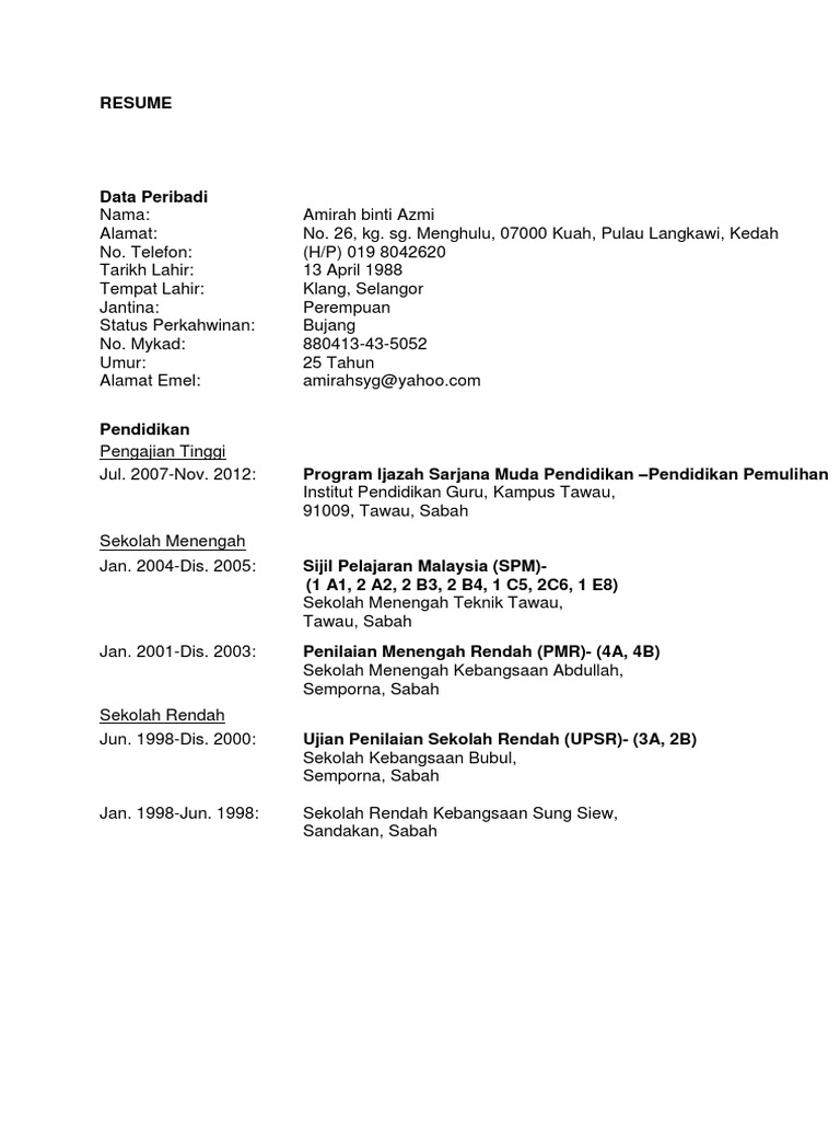 Contoh Resume Untuk Lepasan SPM: Download Format Resume Lengkap, Ringkas & Padat Ini - Edu Bestari